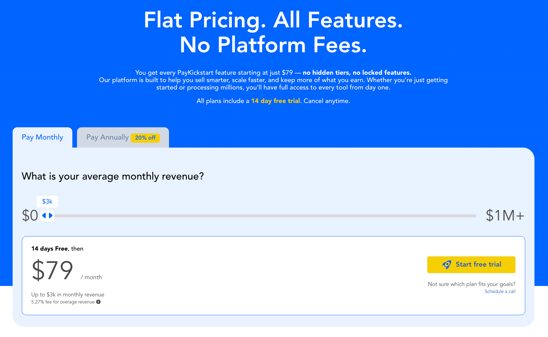 Starting today, you get every powerful tool in the PayKickstart platform for just $79 a month. No more confusing tiers, no locked features, and absolutely no platform transactional fees!